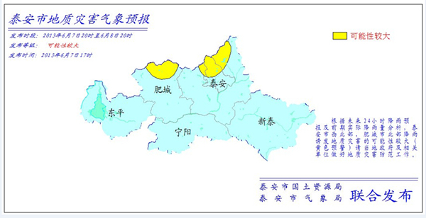 泰安市地质灾害预警预报(2013年6月7日)