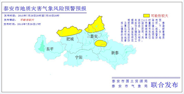 泰安市地质灾害预警预报(2015年7月29日)
