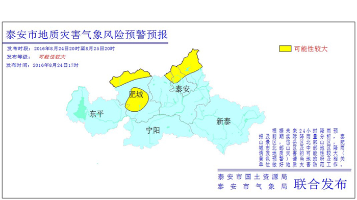 泰安市地质灾害预警预报(2016年8月24日)