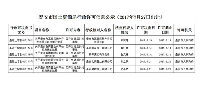 bet36365首页行政许可信息公示(2017年7月27日出让)
