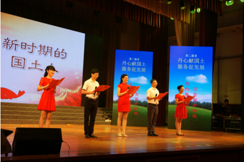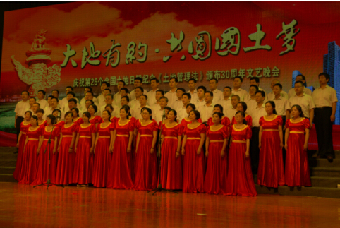 (四)举办庆祝第26个全国土地日文艺晚会。我局与新泰市局于6月25日晚在新泰市影剧院联合举办了庆祝第26个全国土地日暨纪念《土地管理法》颁布30周年文艺晚会,社会各界干部群众600余人观看了演出。晚会以“大地有约·共圆国土梦”为主题展开,全场节目都由国土干部职工自导自演,整台晚会,编排紧凑,歌舞兼顾,动静结合,异彩纷呈。全体演职人员全身心投入,团结一心,奉献了一场精彩的文艺演出,展现了国土人的风采和良好形象。