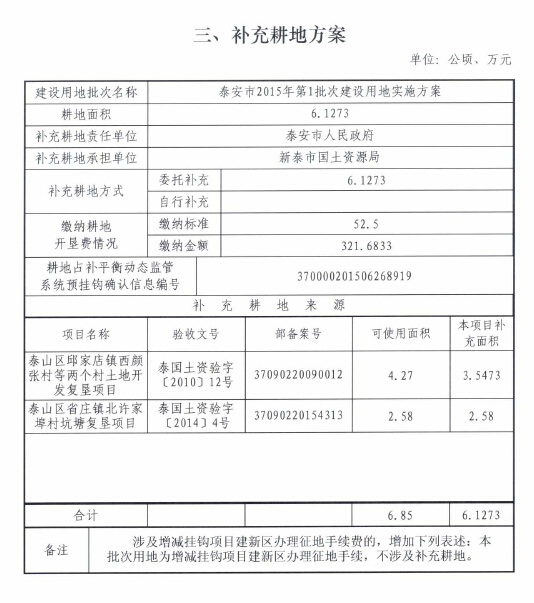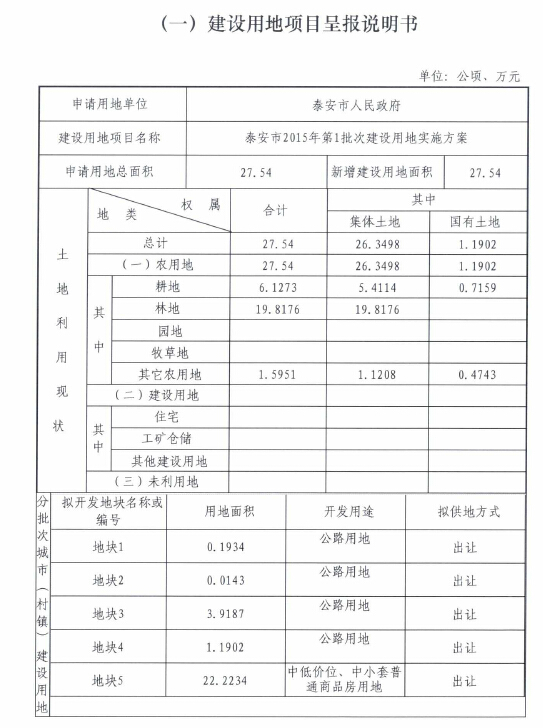 一书四方案 泰安市2015年第1批实施方案用地方案