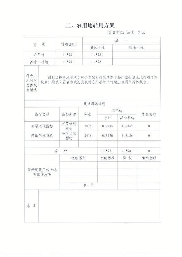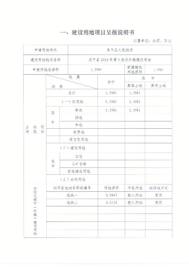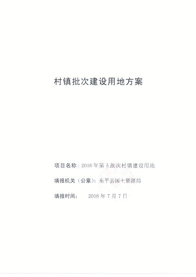 一书四方案 东平县2016年第5批次村镇建设用地