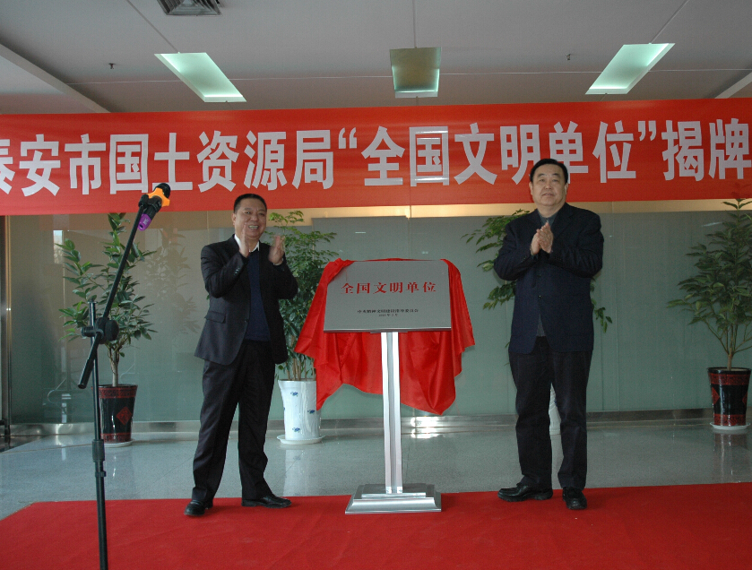 11月27日,市国土资源局在交易中心大厅隆重举行全国文明单位揭牌仪式。市委常委、宣传部长张瑞东,市文明办有关领导,局机关和直属事业单位全体人员参加揭牌仪式。