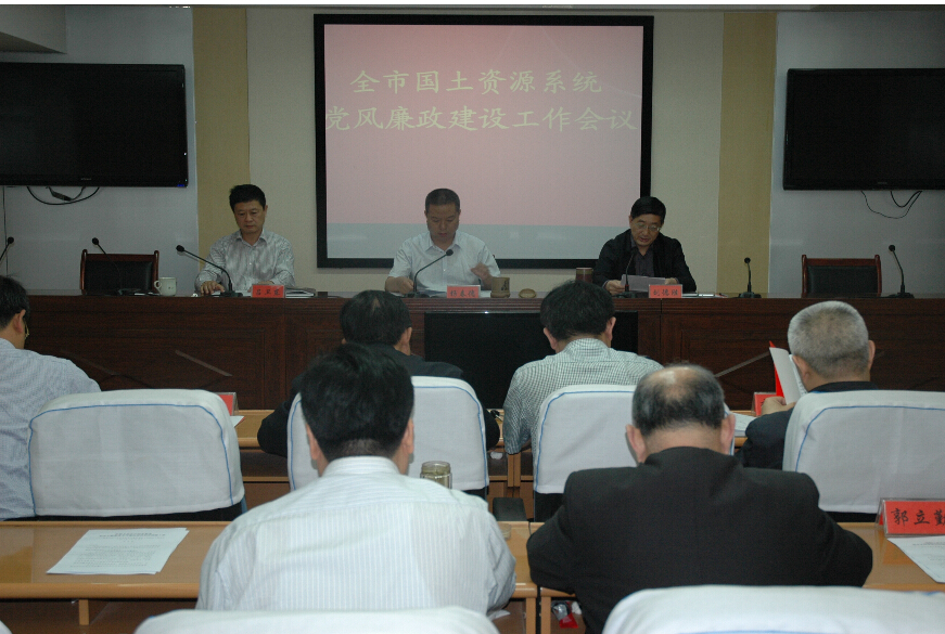 4月29日,全市国土资源系统党风廉政建设工作会议召开,深入学习贯彻十八届中央纪委六次全会、市纪委十届七次全会和全省国土资源系统党风廉政建设工作会议精神,总结回顾2015年党风廉政建设工作,安排部署2016年党风廉政建设和反腐败任务。市局副县级以上领导干部,机关科室、事业单位主要负责人和纪检监察员,各县市区局(分局)局长、纪检组长(纪委书记)参加了会议。会议由党组成员、调研员刘德胜主持,党组成员、纪检组长吕卫东受局党组委托作了2015年党风廉政建设工作报告,党组书记、局长杨春德作重要讲话。