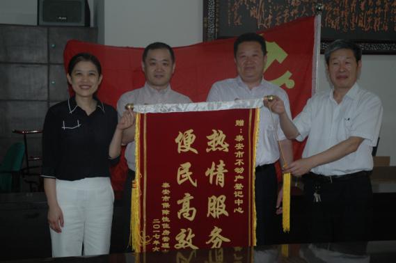 7月11日,市房管局党委委员、副局长张群一行来到市不动产登记中心,赠送了一面“热情服务,便民高效”的锦旗,表达对市不动产登记中心工作人员热情高效服务的真挚感谢。