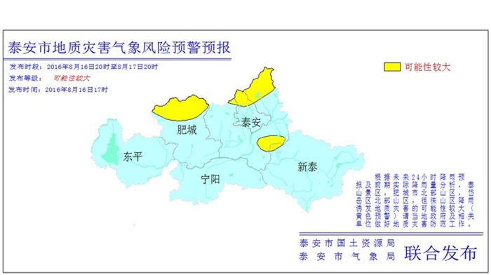 泰安市地质灾害预警预报(2016年8月16日)