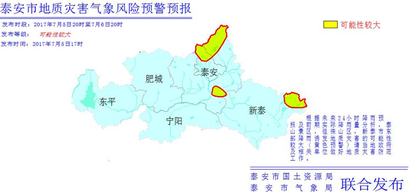 泰安市地质灾害预警预报(2017年7月5日)