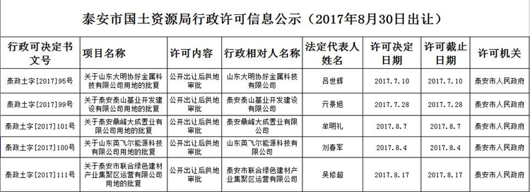 bet36365首页行政许可信息公示(2017年8月出让)