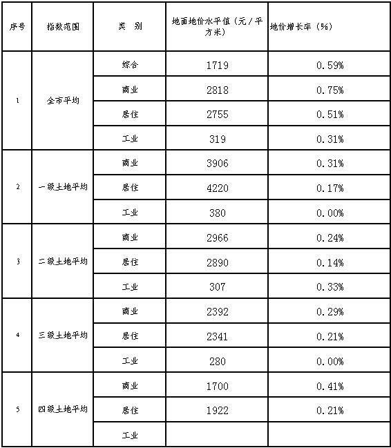 泰安市城区2016年度第2季度地价指标级动态监测数据