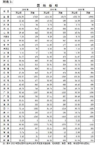 ──土地利用结构得到优化。农用地保持基本稳定,建设用地得到有效控制,未利用地得到合理开发;城乡用地结构不断优化,城镇建设用地的增加与农村建设用地的减少相挂钩。到2010年和2020年,农用地稳定在66177.09万公顷(992656万亩)和66883.55万公顷(1003253万亩),建设用地总面积分别控制在3374万公顷(50610万亩)和3724万公顷(55860万亩)以内;城镇工矿用地在城乡建设用地总量中的比例由2005年的30%调整到2020年的40%左右,但要从严控制城镇工矿用地中工业用地的比例。