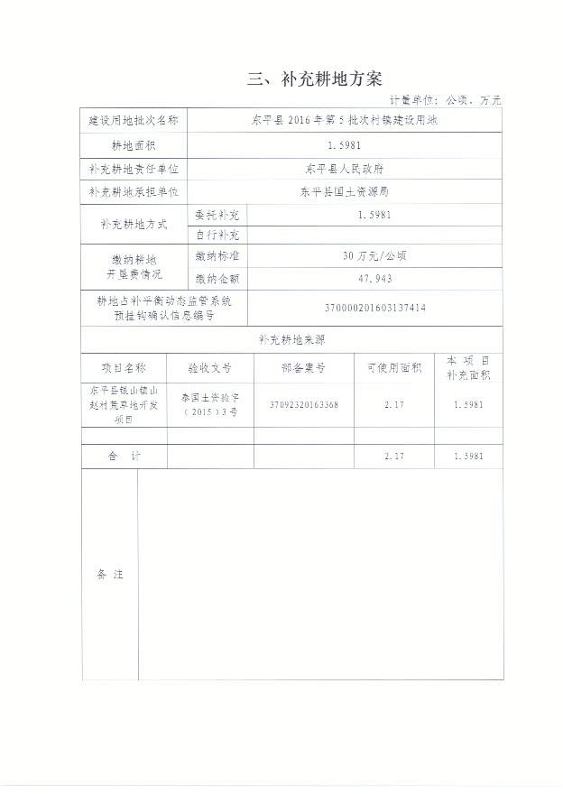 一书四方案 东平县2016年第5批次村镇建设用地